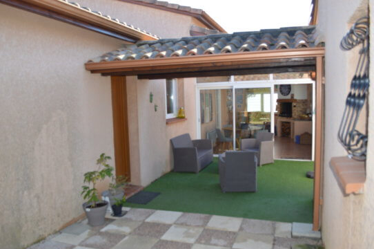 At about 40 mns from Blagnac , and close to l’Isle Jourdain beautiful villa in very good condition to discover in a pleasant environment. A living room with a fireplace equipped with an insert leads you to a veranda converted into a very friendly place with Bbq. Large kitchen semi open to the living room, laundry room, separate toilet.